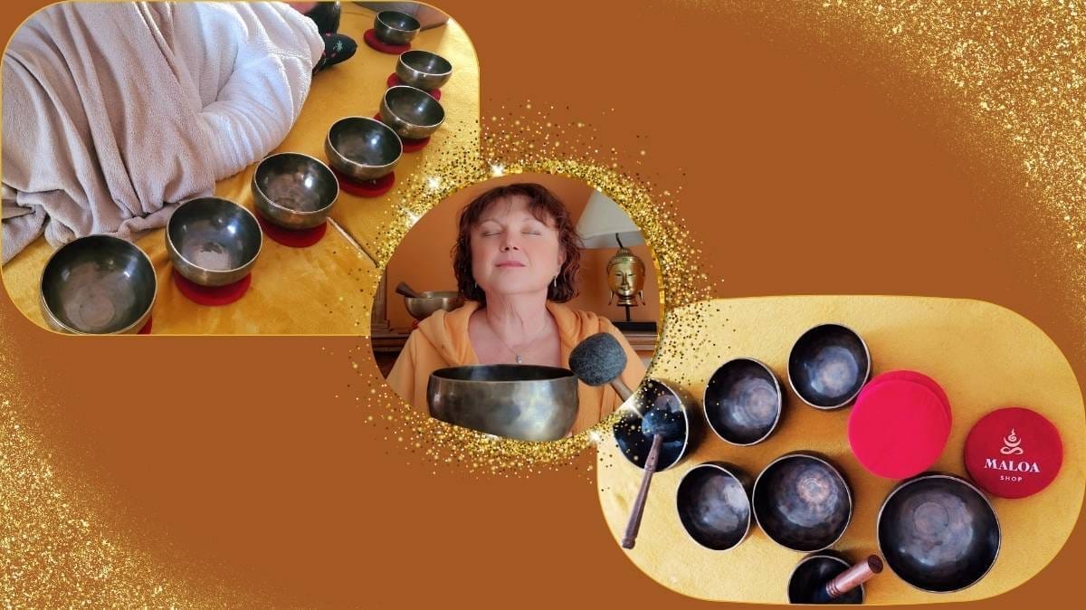 Le soin aux bols tibétains est une relaxation méditative guidée par les vibrations sonores. J'utilise pour cela 7 bols chantants distincts, chacun accordé sur une fréquence spécifique correspondant à l'un de vos 7 chakras, les principaux centres énergétiques de votre corps qui régulent votre bien-être global.